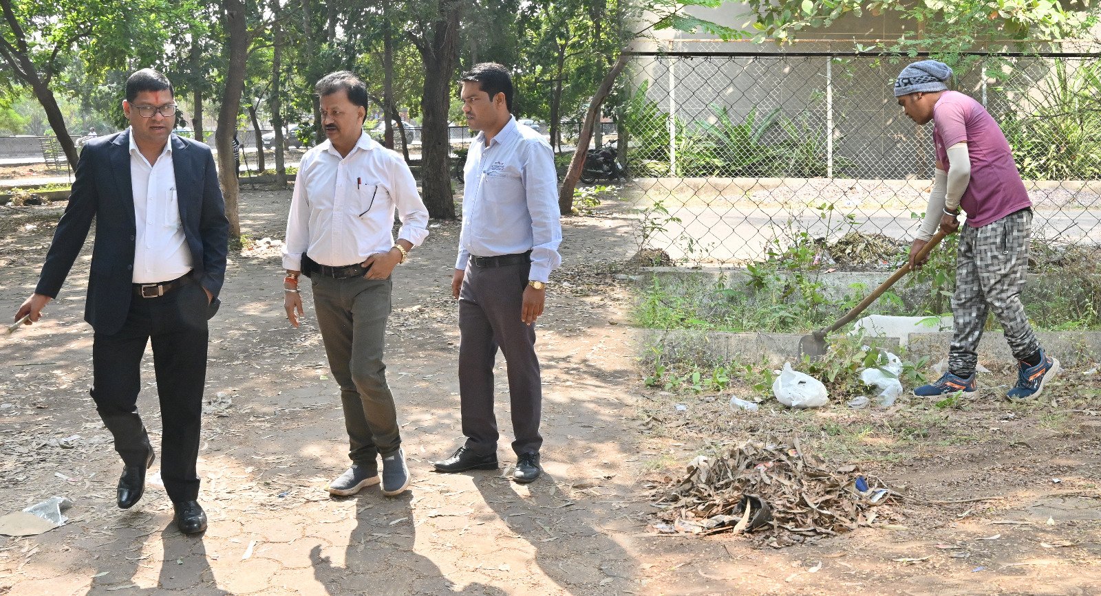 उद्यानों की साफाई कर रहे कर्मचारियों से बात किये। यह देखने में आता है, कि कुछ असामाजिक तत्वों द्वारा निगम के उद्यानों में लगे फैसिंग, तारो एवं ग्रील को तोड़ देते है। वहां से आने-जाने का रास्ता बना दिया जाता है। कुछ ग्रीलों को चोरी कर ले जाते है। इसके लिए आयुक्त ने निर्देशित किया की जहां भी ऐसी घटना होती है। वहां का स्थल निरीक्षण प्रतिवेदन लेकर पंचनामा तैयार कर एफआईआर दर्ज कराया जाए। पुलिस प्रशासन द्वारा तपसीस की जाएगी और संबंधितो को इसकी सजा दी जाएगी।